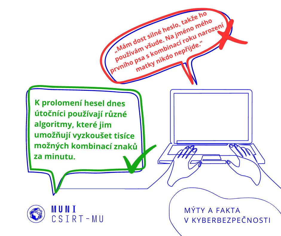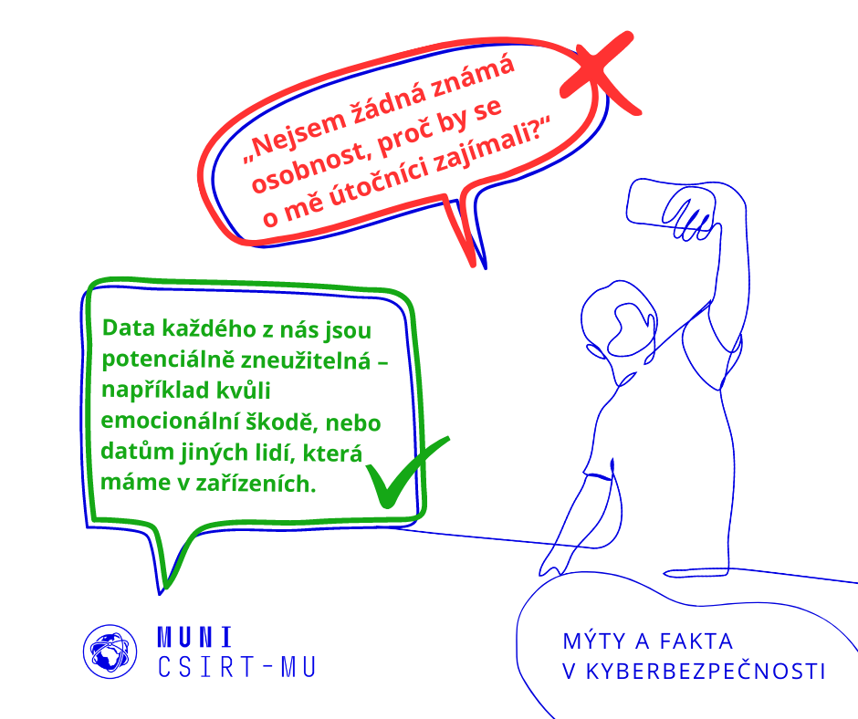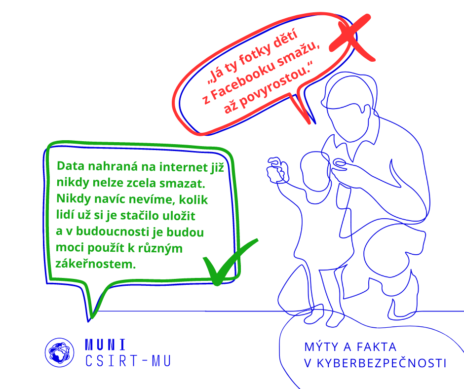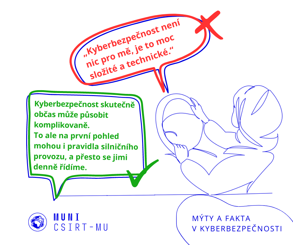 Osvětová kampaň Mýty a fakta kyberbezpečnosti uváděla na pravou míru nejčastější omyly uživatelů, se kterými jsme se v CSIRT-MU setkávali. Jednalo se o sérii facebookových příspěvků publikovaných v jednom měsíci a můj úkol spočíval v tvorbě vizuálního stylu kampaně a v copywritingu.